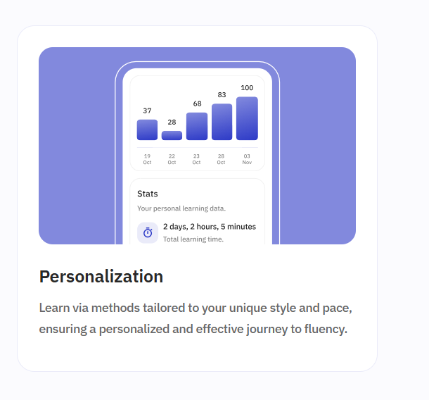 The platform uses natural language processing (NLP) to understand user input and respond in real time. This creates an interactive learning environment where users can engage in meaningful conversations.